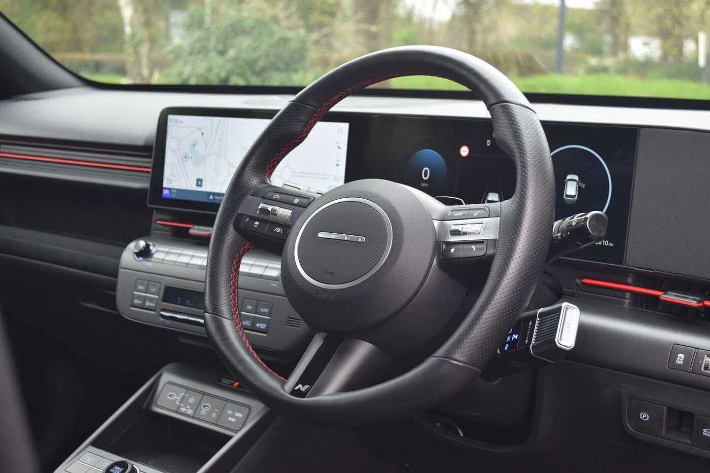 This 2024 Hyundai KONA N Line Electric is a superb example, having had only one owner since new. This striking N Line variant boasts a substantial 65 kWh battery, offering an impressive maximum range of 282 miles when fully charged. For convenience, a full charge at home using a 7kW charger takes approximately 8 hours and 53 minutes, while rapid public charging can replenish the battery from empty to 80% in just 46 minutes. This KONA also comes equipped with a helpful rear camera and guidance system for parking, smart cruise control with stop and go functionality, and a wireless phone charging pad. You'll also appreciate the automatic headlights that activate with a dusk sensor and the smart key system for keyless entry and starting. The Hyundai KONA N Line Electric stands out with its combination of advanced technology and practical features. The inclusion of smart cruise control, which adapts to traffic conditions, and the convenience of keyless entry and a wireless charging pad demonstrate a thoughtful approach to driver comfort and ease of use. These features, alongside the impressive battery capacity and charging speeds, position this KONA as a compelling choice for those seeking an efficient and well equipped electric vehicle.